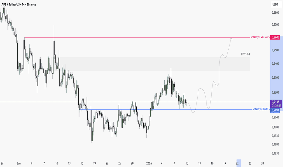 #APE — сетап на лонг при возврате к зоне 4ч ТФРазбор - BINANCE:APEUSDT.P #APE