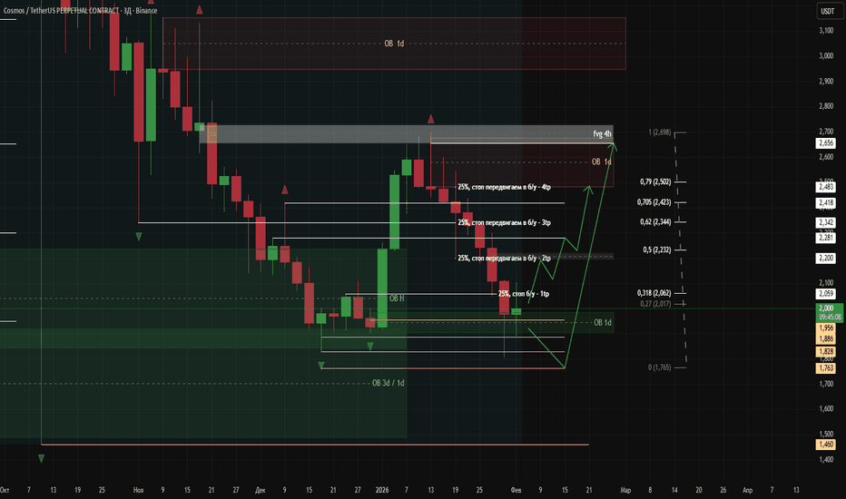 ATOM - в среднесроке ОСВОИМ КОСМОС. От 30.01.2026🔥 BINANCE:ATOMUSDT.P рассматриваю ЛОНГ позицию с ЦЕЛЬЮ 🚀обновления High, предварительно сходив к раскинутым лимитным ордерам.