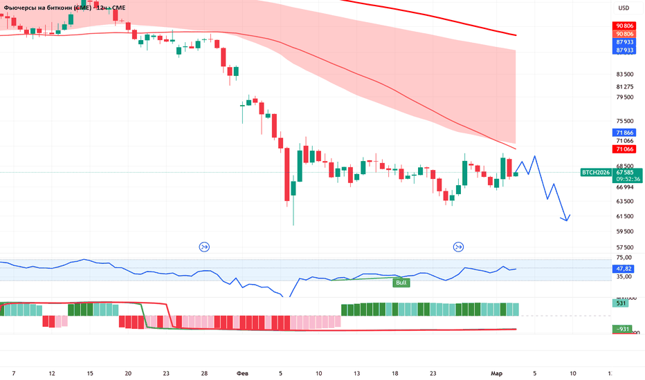 BTC (CME, 12H) — консолидация под сопротивлениемПосле импульсного слива рынок перешёл в боковик 66k–69k.