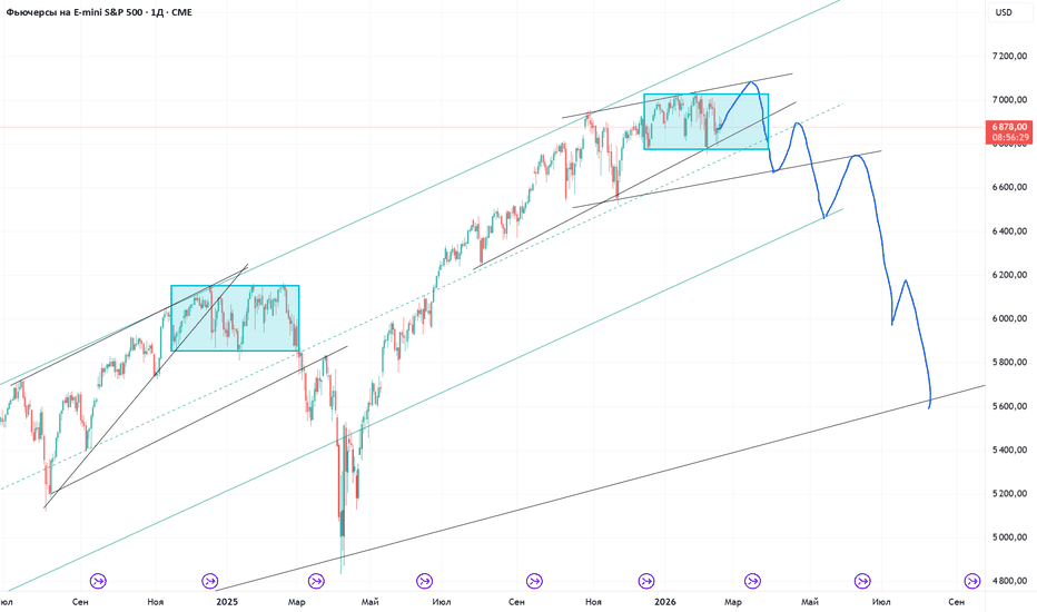 S&P 500: зона распределения и критическая поддержкаИндекс S&P 500 формирует возможную фазу распределения после предыдущего роста. Структура начинает выглядеть уязвимой, а волатильность постепенно сжимается перед потенциальным движением.