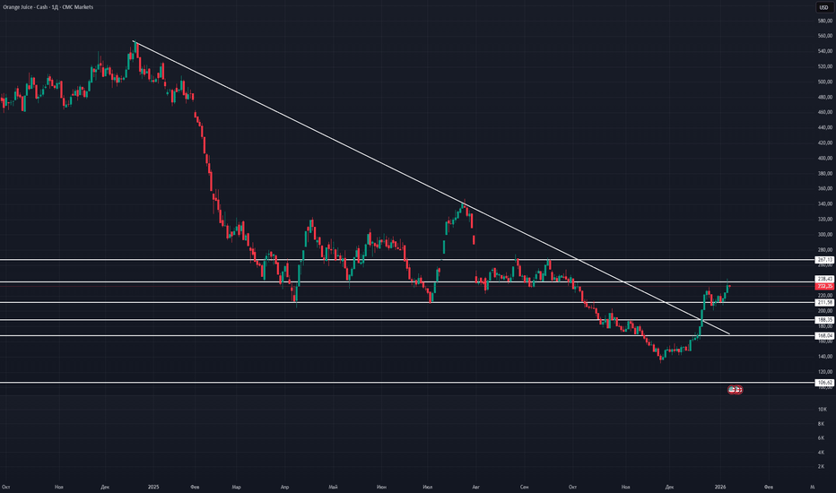 Вторая волна сокаRUS:OJ1! Апельсиновый сок на споте интересно выглядит по техническому анализу, пробует формировать вторую волну роста. Длиннаяот InvestContent0
