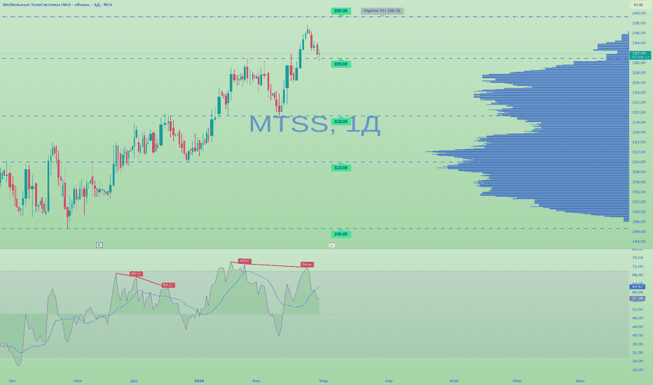 МТС: коррекция или новый рост? Ключевые уровни на сегодня!Мобильные ТелеСистемы. Как вам идея немножко остудить горячий телеком, который штурмовал хаи последние недели? По данным рынка, бумаги отыграли ожидания по дивидендам и сейчас выглядят перегретыми - народ уже начинает потихоньку фиксировать прибыль.