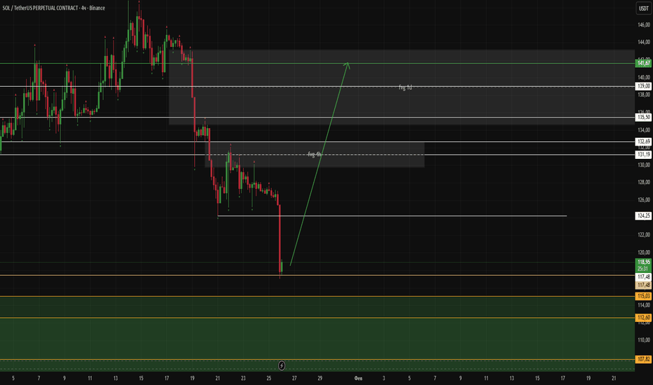 Для подтверждения лонг-сценария необходим закреп цены на 4-часовом таймфрейме выше уровня 130$. Это сформирует смену характера движения (ChoCH).