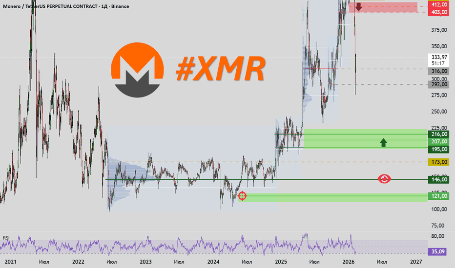 XMR - лонг от стопового уровня + снайпер на будущее#XMR - цена на промежуточной поддержке 292-316, при продолжении коррекции - рассмотрю лонг навстречу шортовой идее, опубликованной отдельно - вот она (цель шорта - лонг, цель лонг-зоны - шорт - смотря что случится раньше):