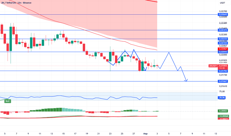 ZK: Ожидаю обновление минимумов?Цена остаётся ниже ключевых скользящих и сопротивлений — структура рынка по-прежнему медвежья, приоритет за движением ниже текущих уровней.